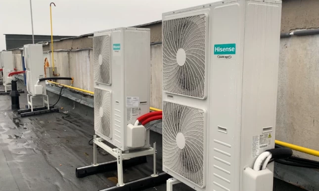 Oro kondicionavimui ir alternatyviam šildymui buvo įrengti kanaliniai Hisense kondicionieriai, kurių vidinius blokus įrengėme techniniame aukšte, kad visada būtų patogu juos aptarnauti, o vidinės patalpos būtų higieniškos ir švarios. Kanalinė mono-split oro šildymo bei kondicionavimo sistema „Hisense“ AUD-60 buvo parinkta neatsitiktinai – sugedus pagrindinei šildymo įrangai, ši sistema kokybiškai sušildys patalpas, o karštuoju metų laiku palaikys norimą vėsą patalpoje.